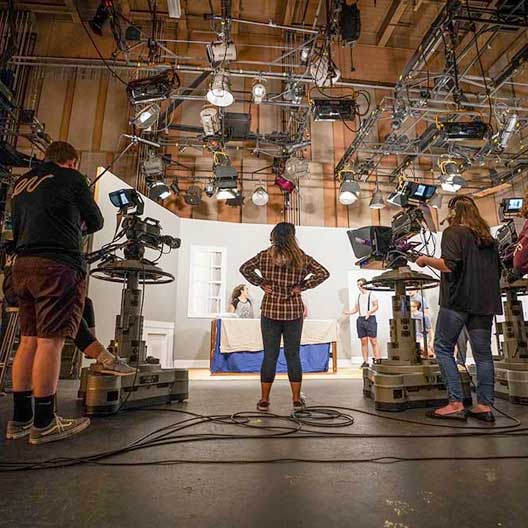 Industry standard field and mobile equipment is available for coursework and projects. The production facilities have current industry gear that allows for live multi-camera video switching and audio mixing everything from talk shows to live band performances.