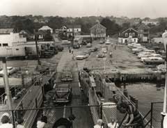 Loading trucks with produce onto the ferry at Orient Point, 1950's