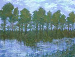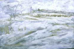 Her recent works in pastel provide ample evidence of yet another dimension to her artistic talents. In this series of works created between 2002 and 2006, Ms. Sherbell focuses on the physical and natural beauty of the East End of Long Island. Working at times quite quickly, she captures the radiance of the sunset in West Hampton Beach Sunset (2003), the eloquence of nature in East Quogue Wildlife Preserve (2002), and the serenity of winter in Basket Creek, Remsenberg in December (2005).