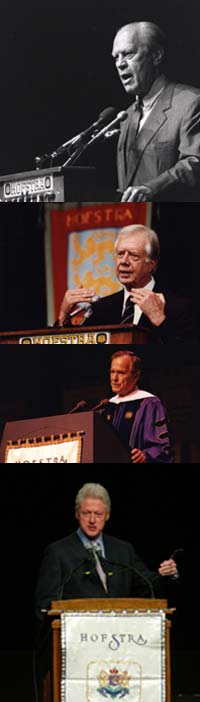 Former US Presidents speaking at Hofstra University: Gerald R. Ford (1989), Jimmy Carter (1990), George H. W. Bush (1997) and William J. Clinton (2005).