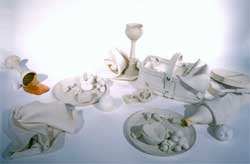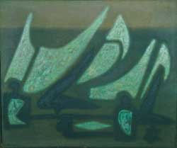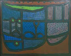 Twardowicz & Dodson: Artists in Parallel follows the evolution of Stanley Twardowicz's artistry, beginning with some of his earliest paintings from the 1940s including Dresser (1944) and Man in Maine (1946). As the exhibit unfolds, it traces his artistic journey to the 21st century with compositions such as #9/00 (2000). Lillian Dodson's work showcases her beginnings with stoneware works including Bag of Onions (1976) and After the Picnic (1980) to recent works including Bound Iron (2003) as well as Interaction (2006).