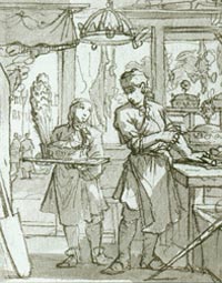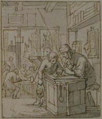 Playing, Learning, Working in Amsterdam's Golden Age: Jan Luyken's Mirrors of Daily Life features more than 110 prints and drawings from Dutch author and illustrator Jan Luyken ((1649-1712) on loan from the Amsterdams Historisch Museum in The Netherlands. The pen and ink drawings and prints come from four different "emblem" books by Jan Luyken. The images trace the human cycle from birth to death, with special attention paid to childhood, schooling, the world of daily occupations in Amsterdam's artisanal workshops, butcher shops, bakeries, industries and shipyards, life at home and customs surrounding death and dying.