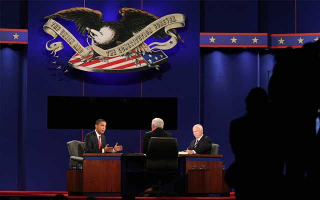 On October 15, 2008, then Senator Barack Obama and Senator John McCain debated at the David S. Mack Sports and Exhibition Complex at 9 p.m. Eastern time. The debate, a traditional "podium" debate, was moderated by Bob Schieffer of CBS News. It was during this debate, "Joe the Plumber" was created and the issue of small businesses and tax policy was raised.