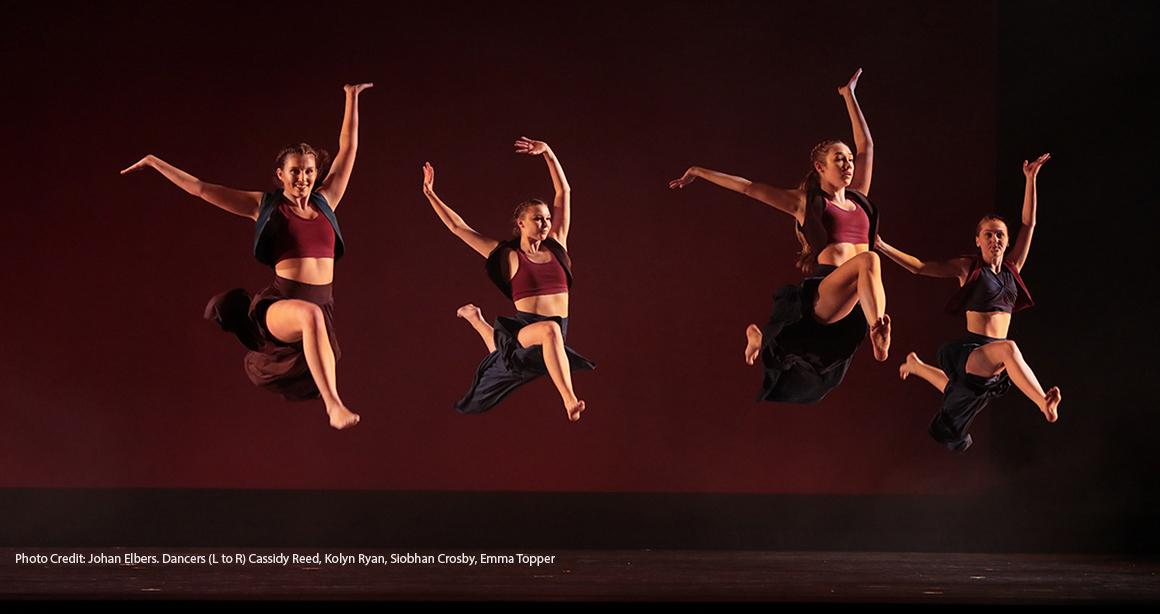 The Spring 2025 Dance Concert features pieces by Hofstra faculty choreographers and guest artists. Pictured: Guest choreographer Daniel Moore’s “Escape,” performed for the 2024 Spring Faculty Dance Concert. Photo by Johan Elbers.