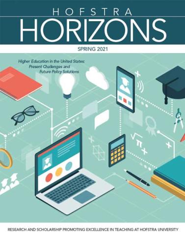 Hofstra Horizons is an annual publication that celebrates the research and creative work of Hofstra University faculty. The Office for Research and Sponsored Programs produces the magazine, showcasing thought-provoking projects and scholarly achievements across disciplines.