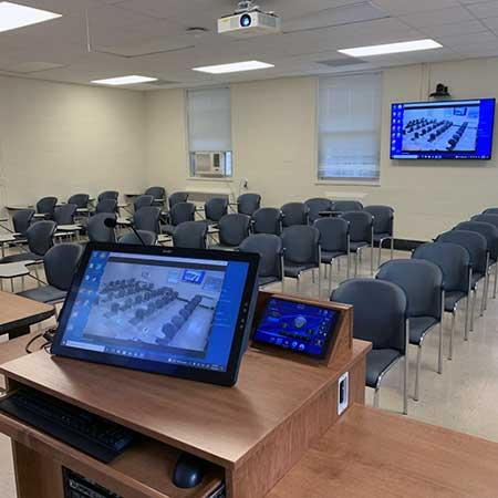 - Four classrooms and seven specialized labs were upgraded to standard lecture capture, which includes a camera and microphone that captures the faculty member. These rooms are:
