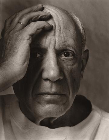 Arnold Newman, Pablo Picasso, painter, sculptor, printmaker, Valluris, France, 1954, Silver gelatin print, 20 x 16 in. © Arnold Newman Properties/Getty Images