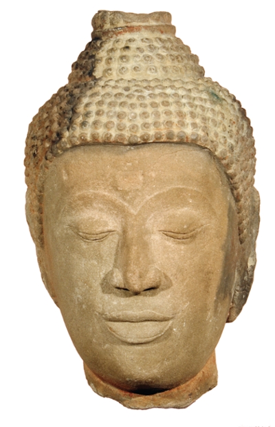 Thailand, Thai, Head of Buddha, ca. 16th century, Pink sandstone, 16.125 x 9.5 x 10.25 in., Gift of Herman Kahn, HU 69.8