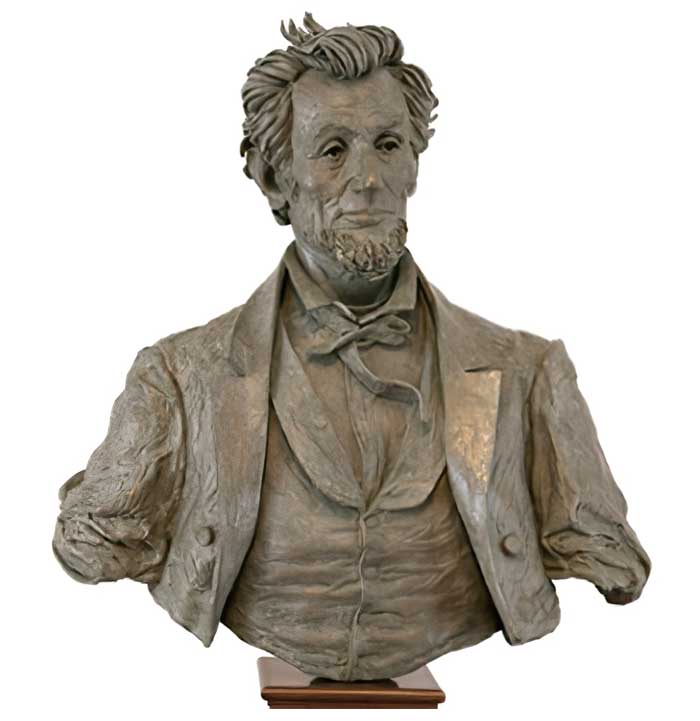 At first glance The ‘Thomas’ Abraham Lincoln may seem to be a traditional representational sculpture of President Lincoln. However, closer examination reveals a heightened sense of drama, motion and emotion coming from the work — almost as if catching Lincoln in an unguarded moment after delivering an impassioned speech. This contemporary work employs a modern sensibility to the image of the 16th president of the United States.