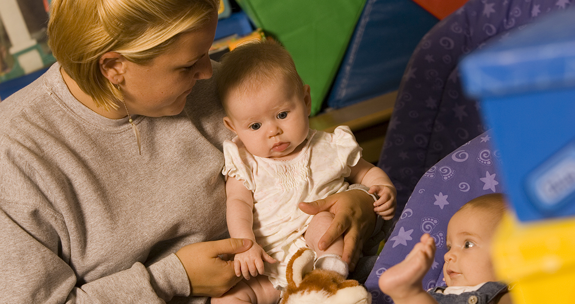 In the infant room, babies eat and sleep on their own schedules. In this nurturing and loving environment, the infants have their own play area and toys.