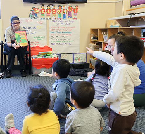 Circle time is an opportunity for the children to come together to read books, sing songs, dance, exercise, discuss classroom activities, participate in flannel board stories, and puppet play.