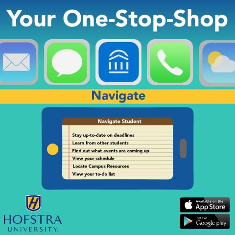 We are excited for the Faculty and Staff of Hofstra to take a hands-on approach in supporting our students through the NAVIGATE platform. Students will access many resources through NAVIGATE, including mid-semester advisories, appointment scheduling, and academic planning. To access NAVIGATE, log on to your Hofstra Portal and click the “Navigate” icon.