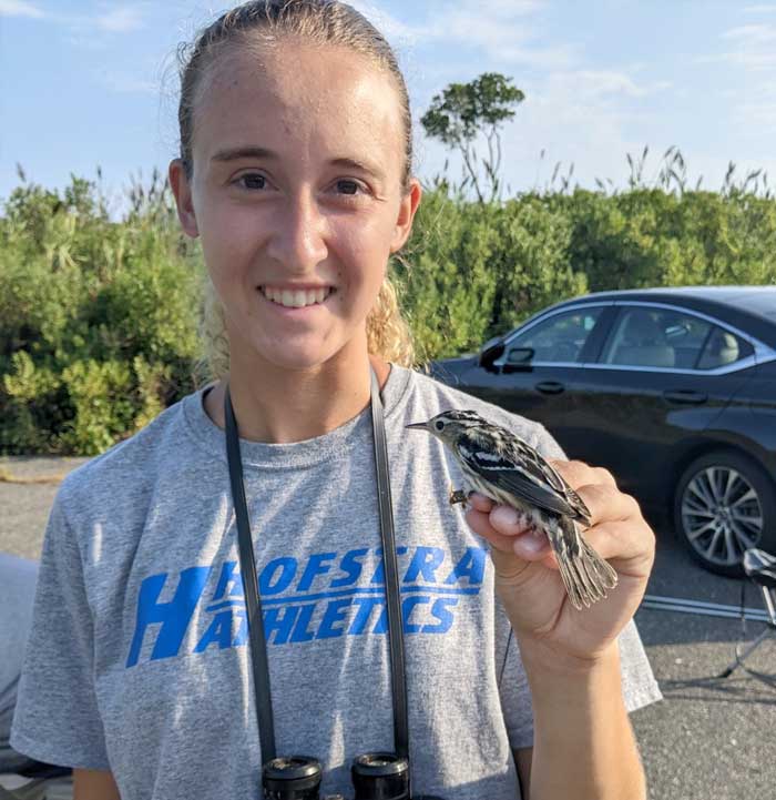 Hough has also been collecting data for the New York State Breeding Bird Survey. At a nature sanctuary in northern Nassau County, she located nests and watched for bird breeding behavior, which how they build their nests, carry food and feed their young. Hough even learned to identify the different songs of the birds in the area. She entered the locations of these behavioral observations into GIS and monitored the bird territories. She says, “I collected data on about 35 bird species such as yellow warblers, wood thrush, and cardinals.”
