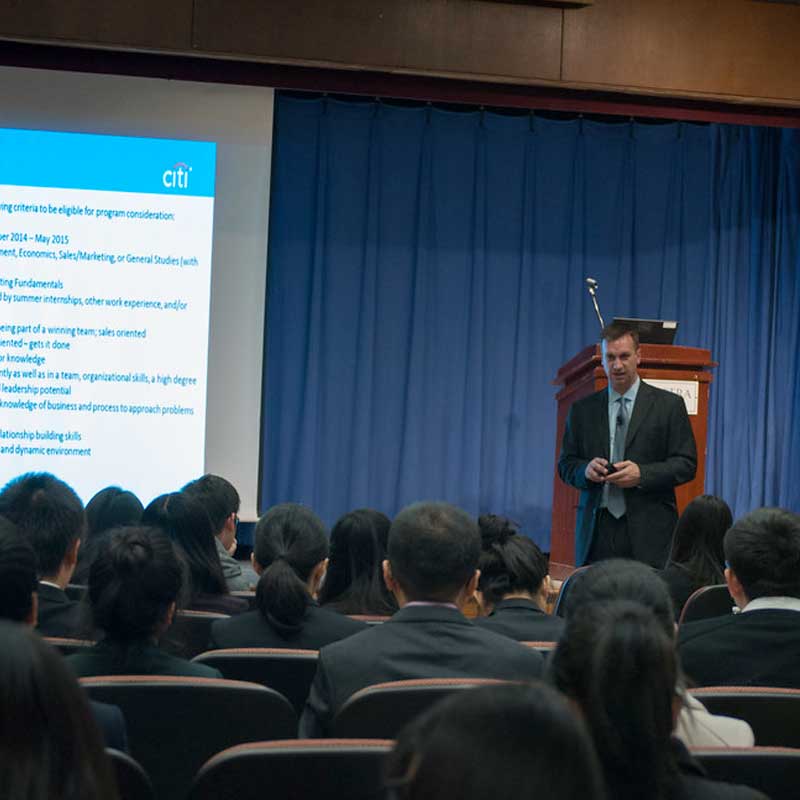 With the help of distinguished faculty and a vast alumni network, the Zarb School of Business puts a world of opportunities within reach for its students. From the Dean’s Business Scholars Program to the Zarb Executive Speaker Series, which brings to campus guests from some of the world’s biggest companies, students come face to face with the realities of the business landscape and learn what’s required for a successful career.
